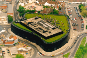 ایده ساختن ساختمان همراه با طبیعت تازه نیست. از دیرباز انسانها میخواستند گیاهان را وارد فضای ساختهشده کنند. باغهای معلق بابل نمونه تاریخی مشهور این تفکر هستند. در دهه ۱۹۷۰، با بحران انرژی و افزایش آگاهی محیطزیستی، معماران مدرن شروع کردند به اجرای این ایده. پروژه Willis Faber and Dumas در انگلستان نمونهای ابتدایی اما مهم است: بام سبز و نمای خاص، هم زیبایی دارد و هم مصرف انرژی را کاهش میدهد.